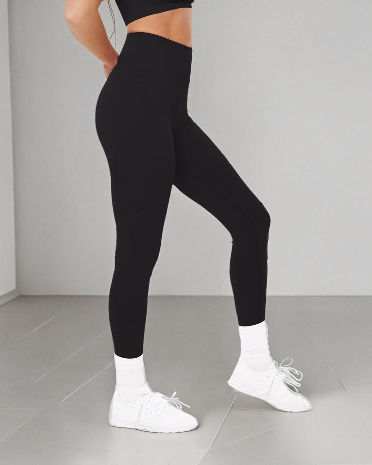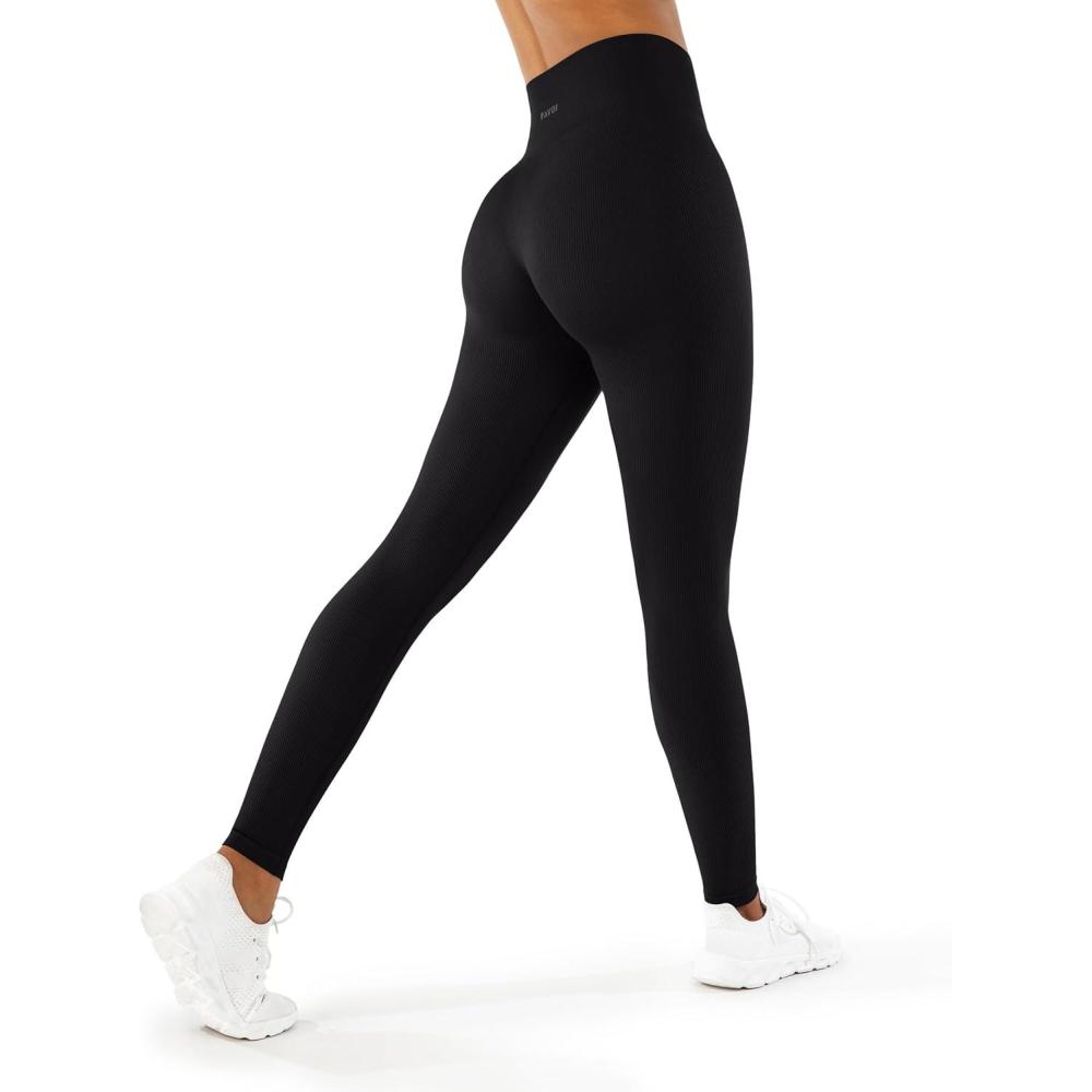 PAVOI ACTIVE Seamless Scrunch Butt Leggings | High Waisted Compression Sculpting Women Full Length Workout Pants | SculptForm(Black)