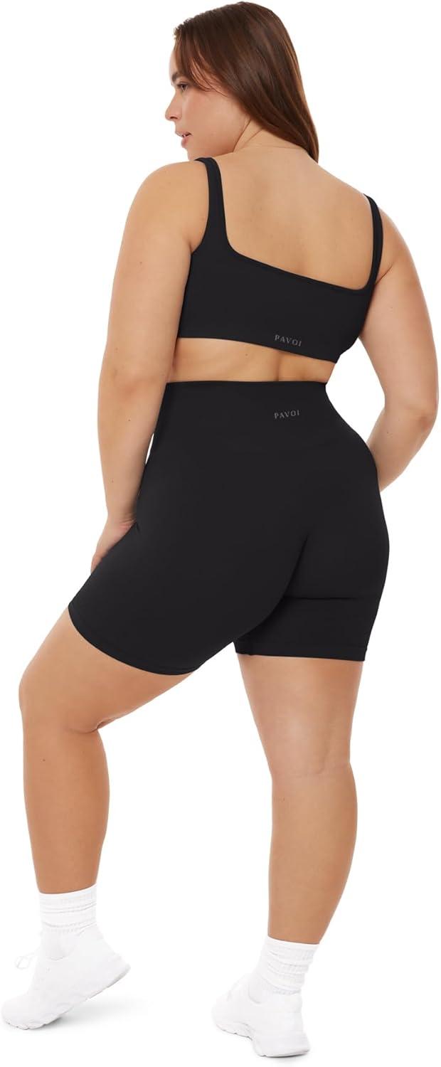 PAVOI ACTIVE Seamless Shorts | Sculpting Compression High Waisted 4.5″ & 6″ Scrunch Butt Ribbed SculptForm Biker Shorts(Black)