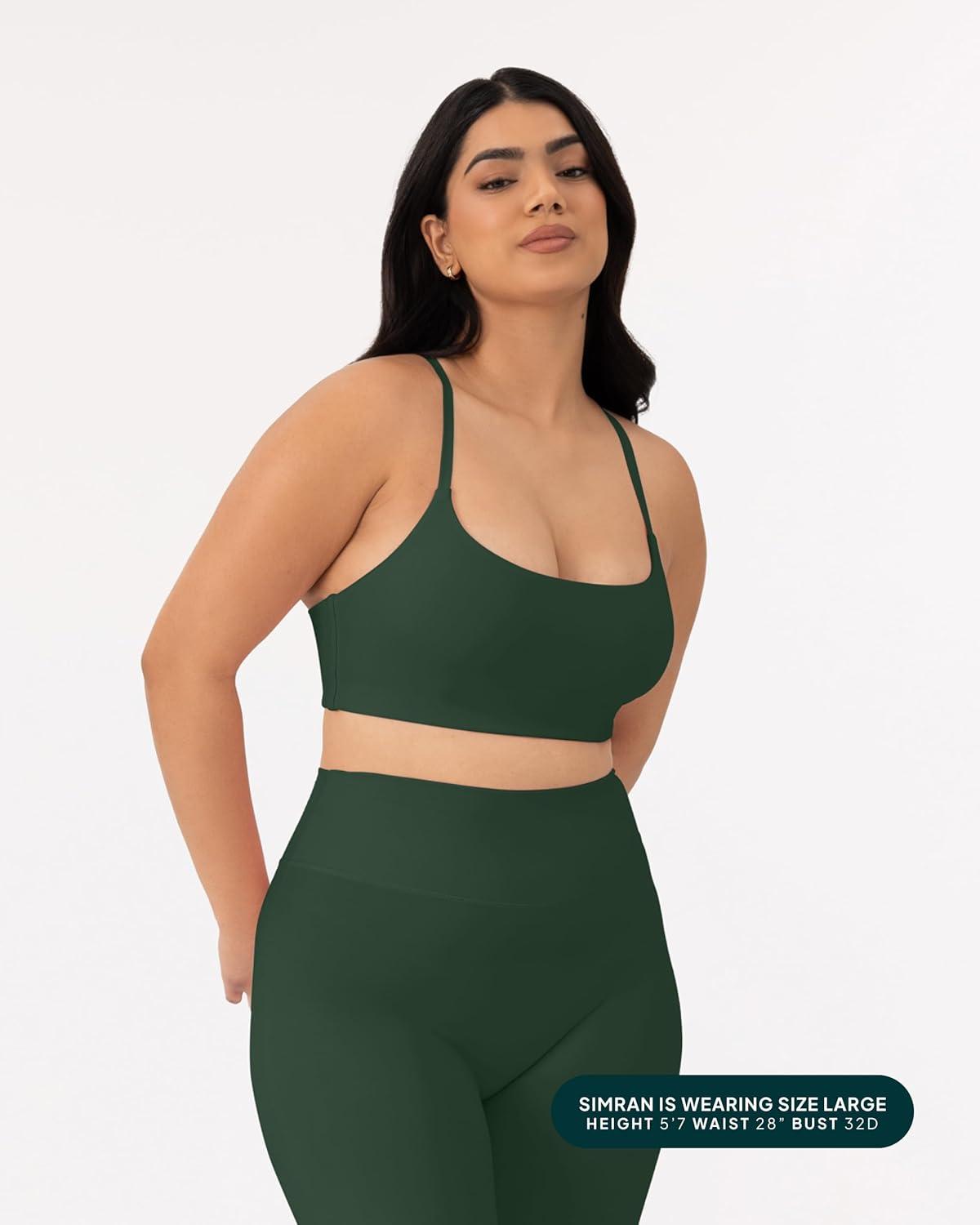 PAVOI ACTIVE Thin Spaghetti Strap Sports Bra for Women – Medium Support Buttery Soft Scoop Neck Workout Yoga Bras – FlexFlow(Pine Green)