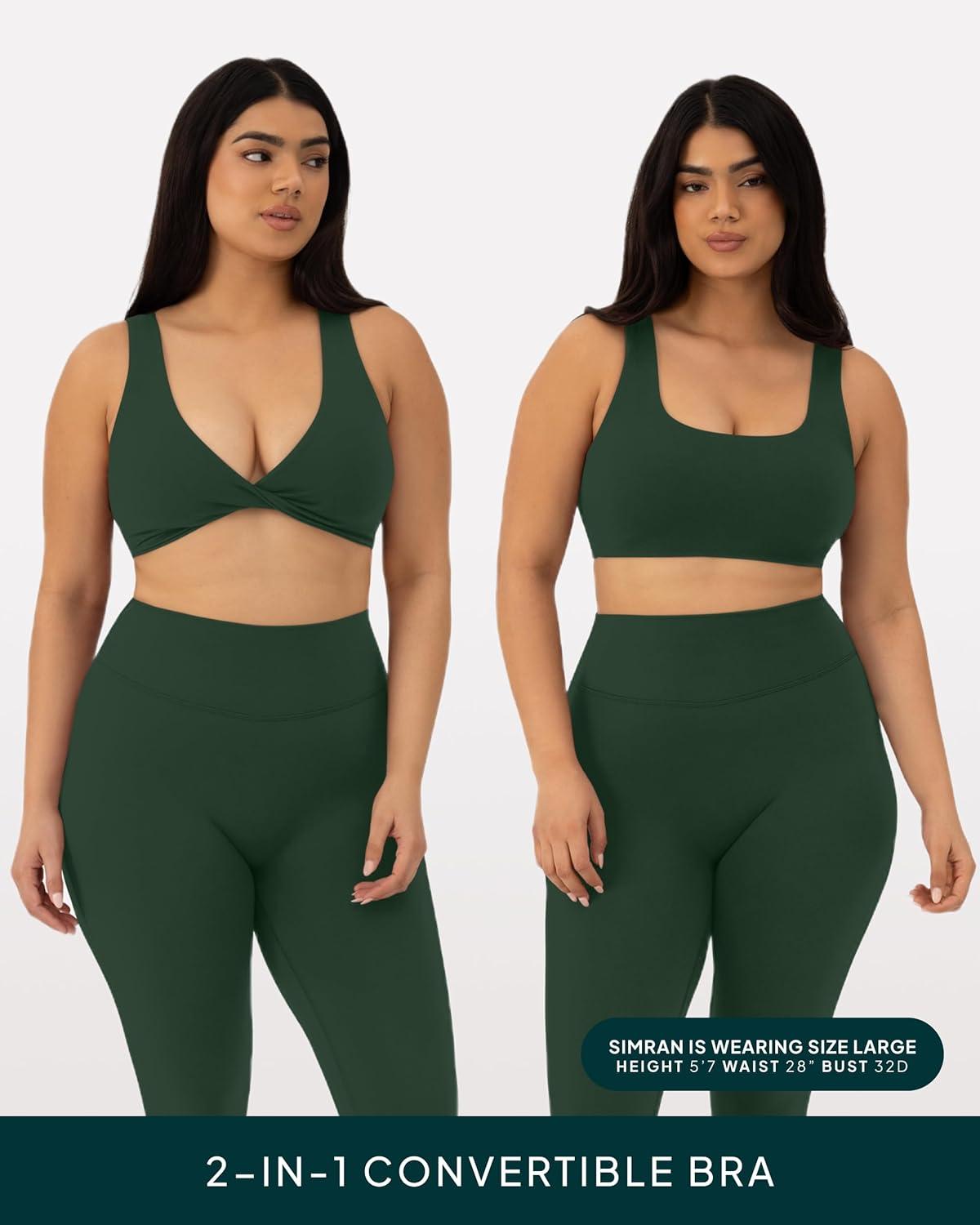PAVOI ACTIVE Two Ways Twist Sports Bra for Women – Customizable Coverage Convertible Twist Front & Back Workout Bra, FlexFlow(Pine Green)