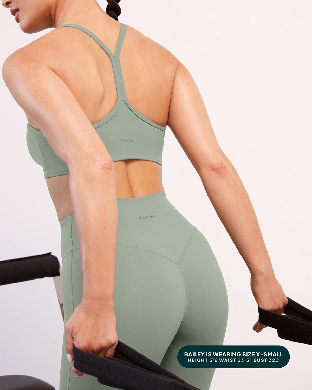 PAVOI ACTIVE Yoga Racerback Bras for Women – Buttery Soft Low Support Scoop Neck Y-Back Thin Strap Sports Bra – FlexFlow(Sage)