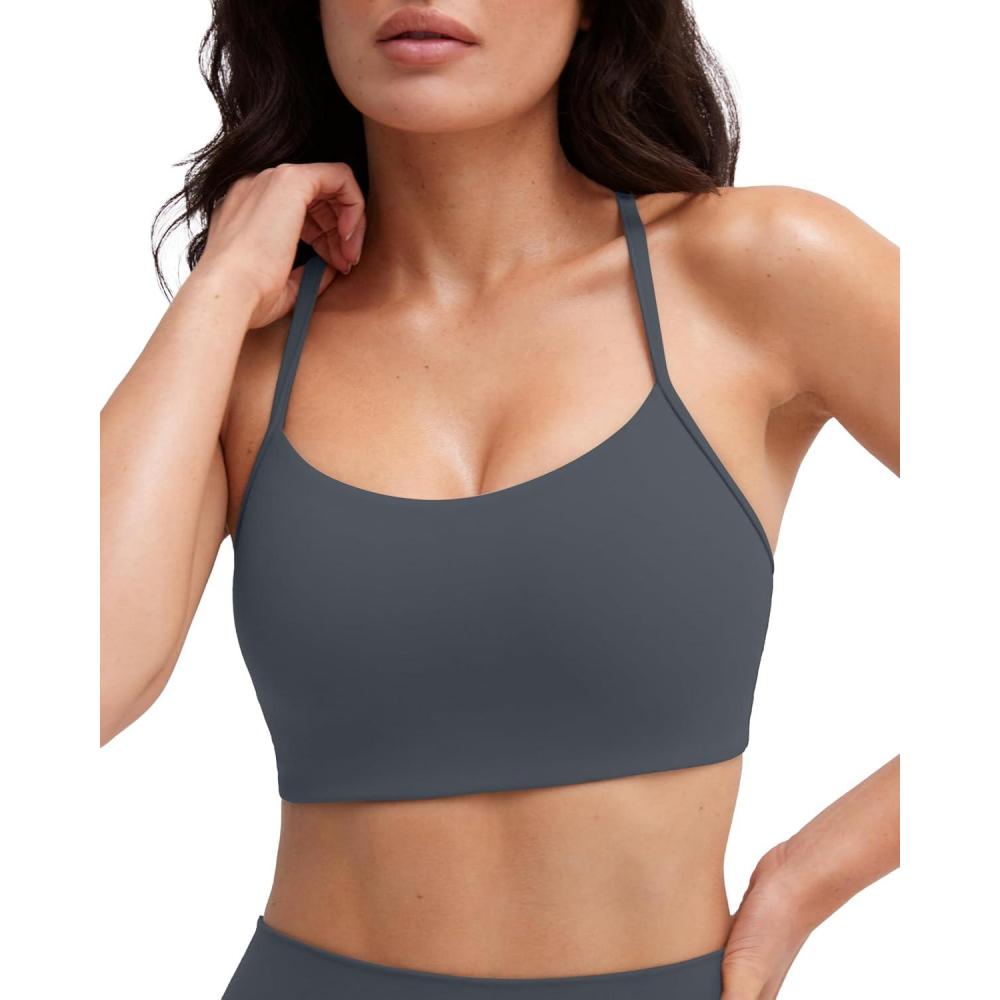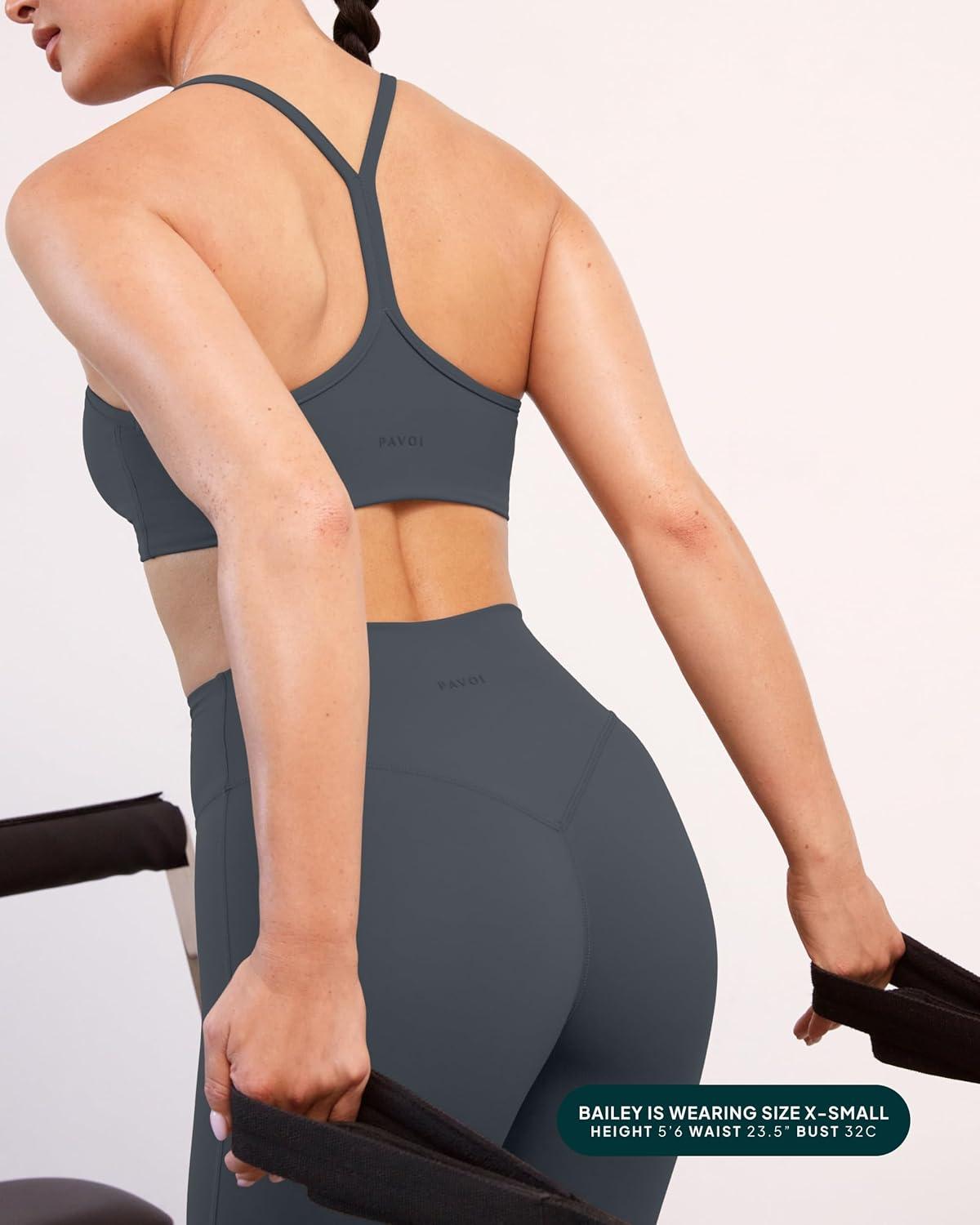 PAVOI ACTIVE Yoga Racerback Bras for Women – Buttery Soft Low Support Scoop Neck Y-Back Thin Strap Sports Bra – FlexFlow(Thunder)
