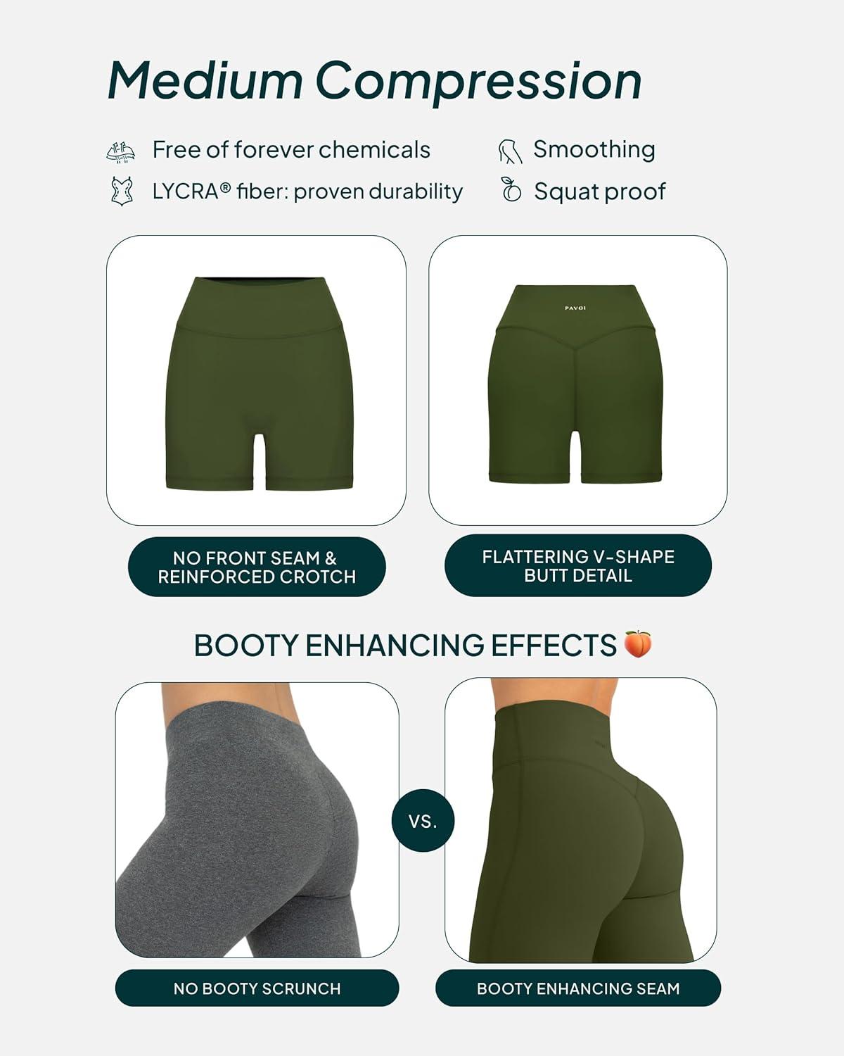 PAVOI ACTIVE Yoga Shorts for Women High Waisted Gym Shorts Buttery Soft Biker Workout Shorts 4″ & 6″ Compression Fit(Army)