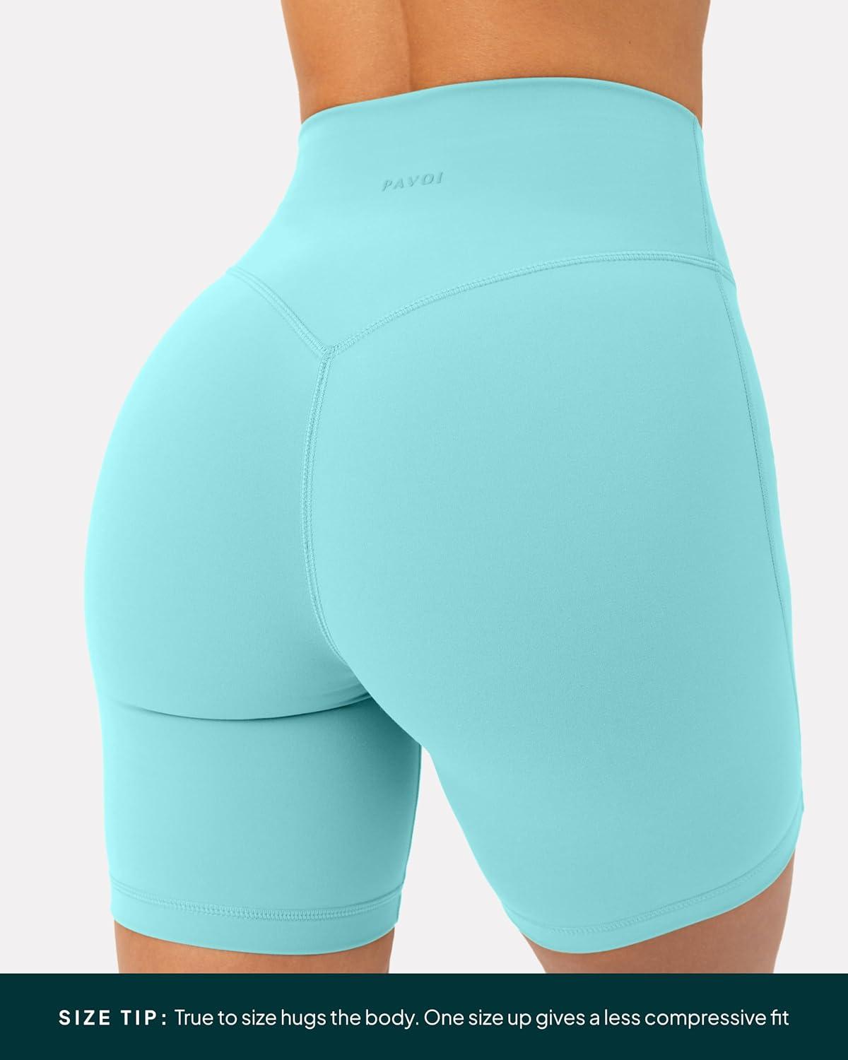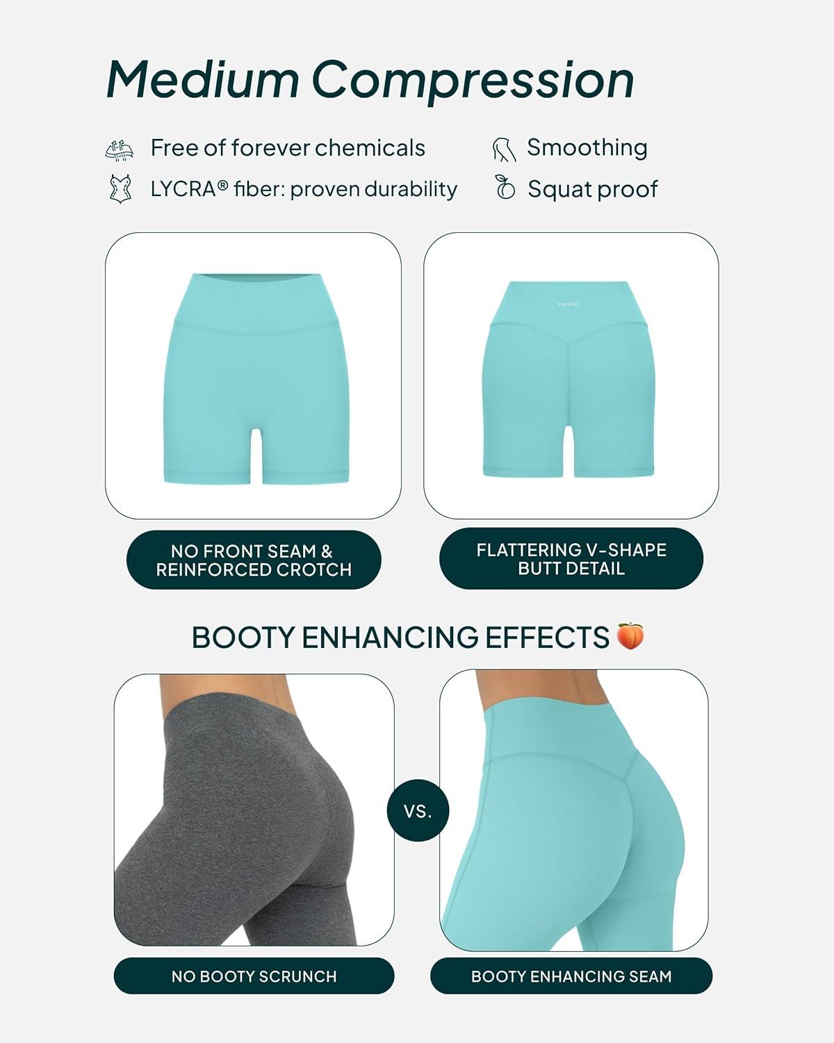 PAVOI ACTIVE Yoga Shorts for Women High Waisted Gym Shorts Buttery Soft Biker Workout Shorts 4″ & 6″ Compression Fit(Caribbean Sea)