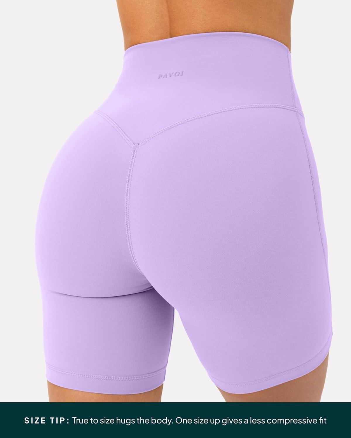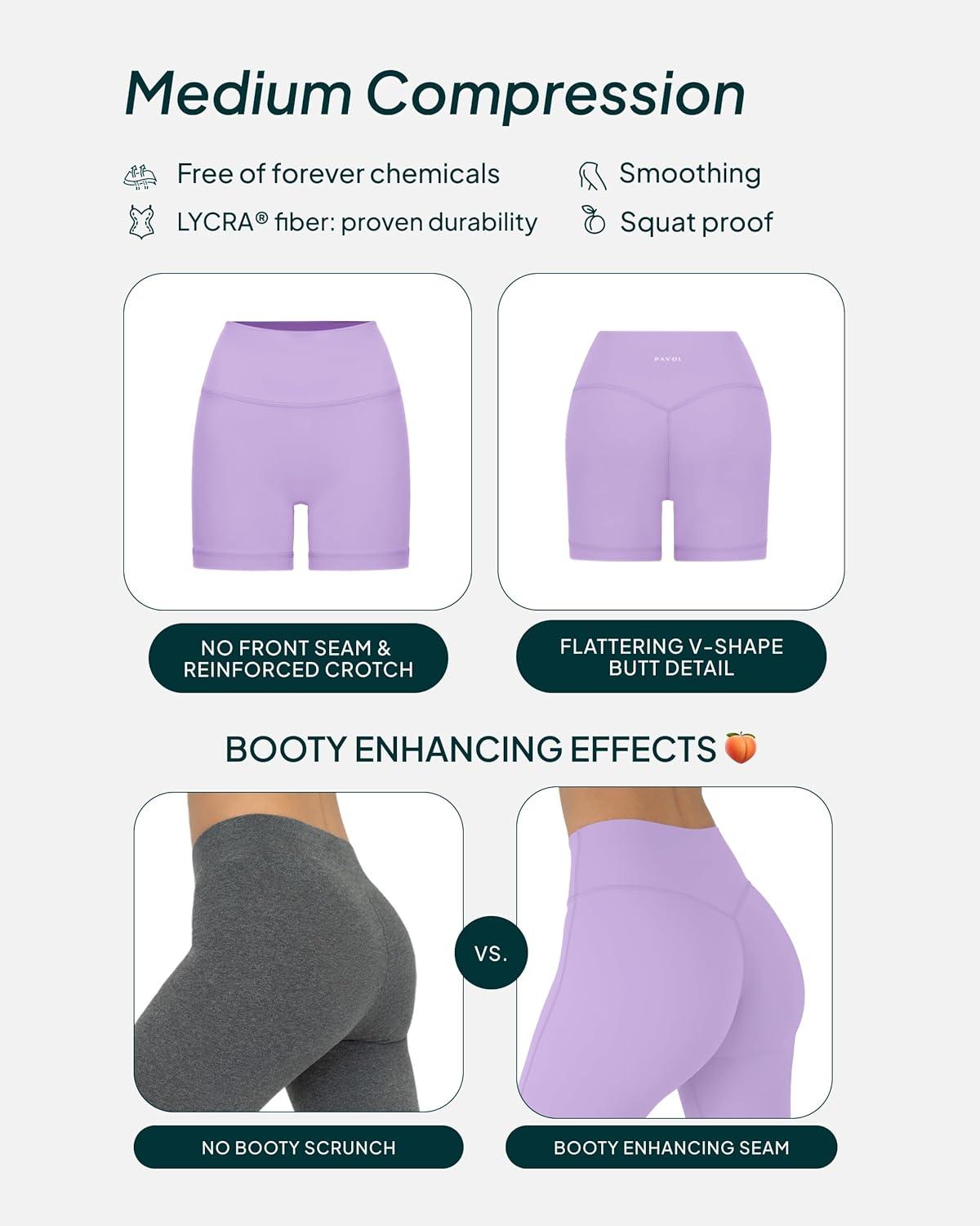 PAVOI ACTIVE Yoga Shorts for Women High Waisted Gym Shorts Buttery Soft Biker Workout Shorts 4″ & 6″ Compression Fit(Lilac)