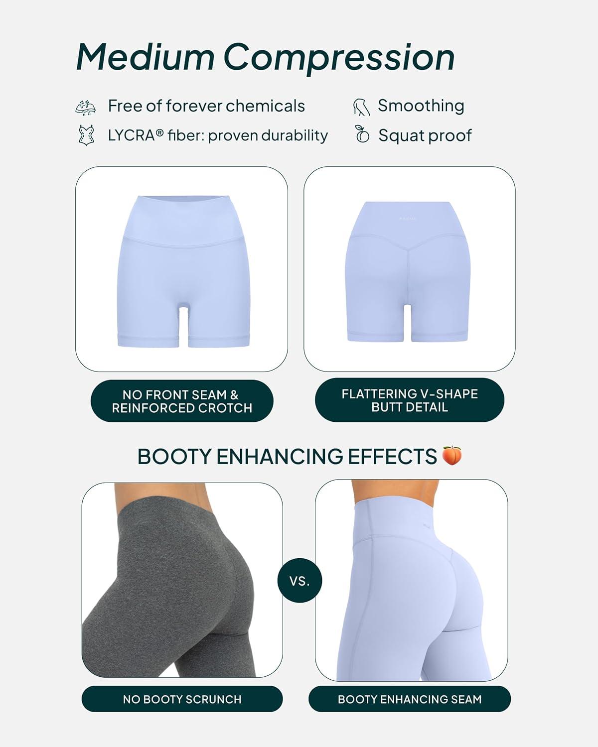 PAVOI ACTIVE Yoga Shorts for Women High Waisted Gym Shorts Buttery Soft Biker Workout Shorts 4″ & 6″ Compression Fit(Seabreeze)
