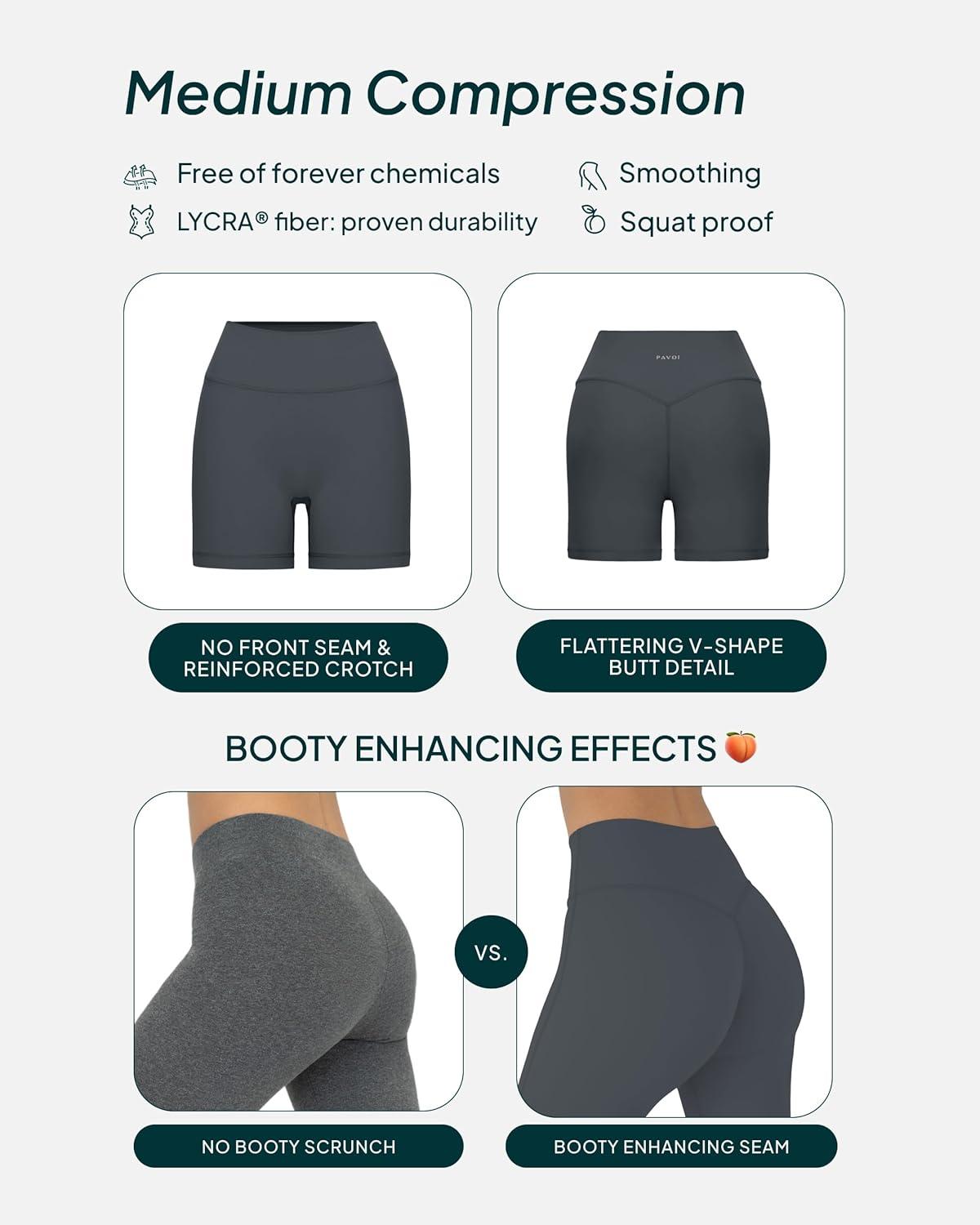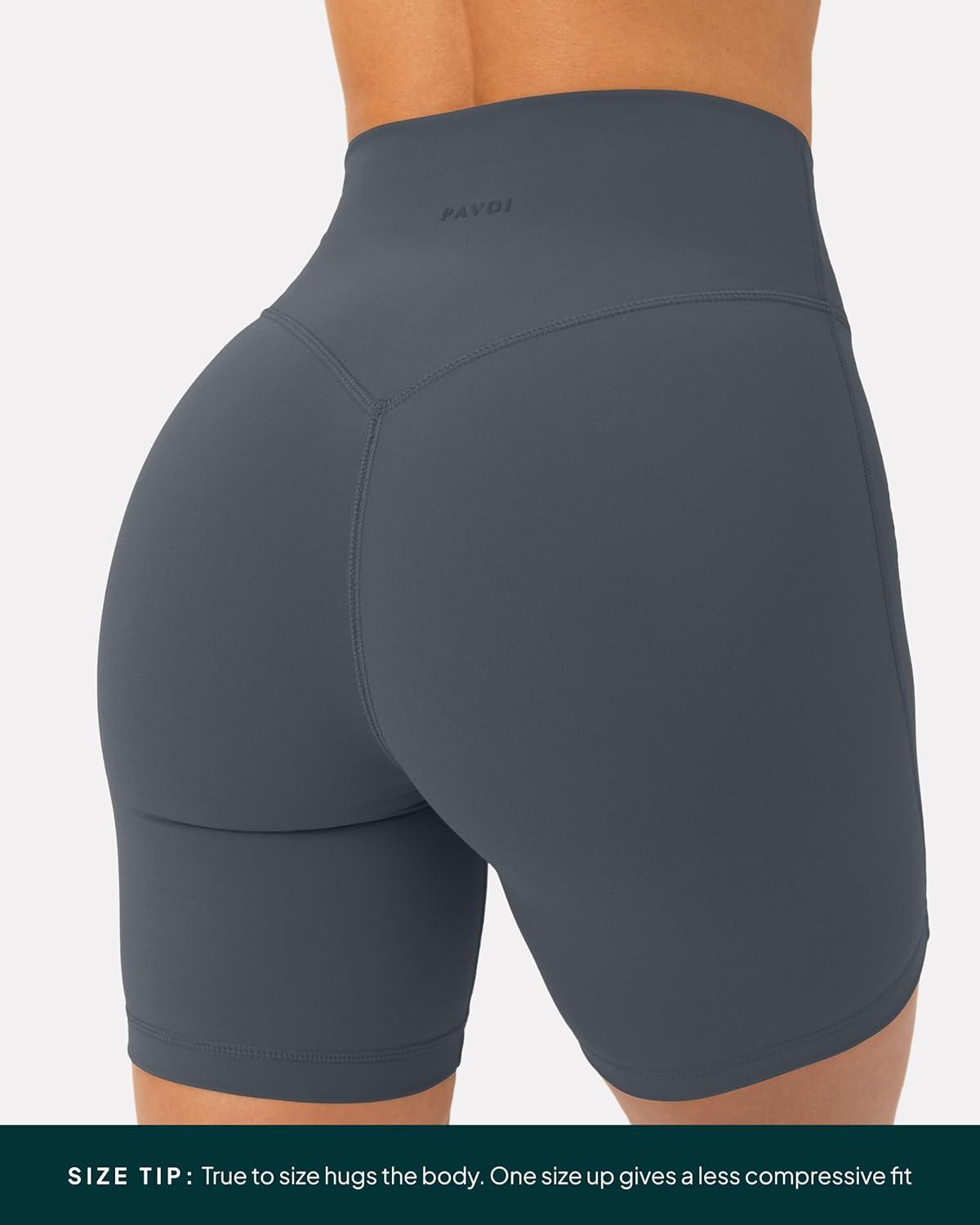 PAVOI ACTIVE Yoga Shorts for Women High Waisted Gym Shorts Buttery Soft Biker Workout Shorts 4″ & 6″ Compression Fit(Thunder)