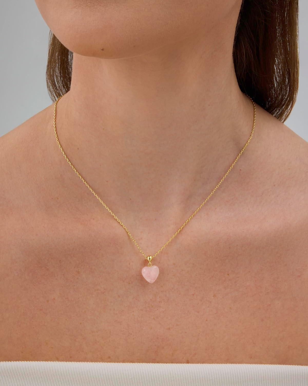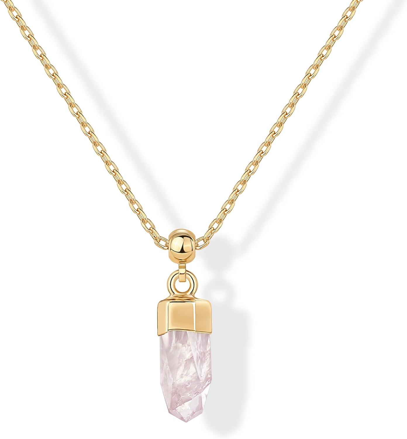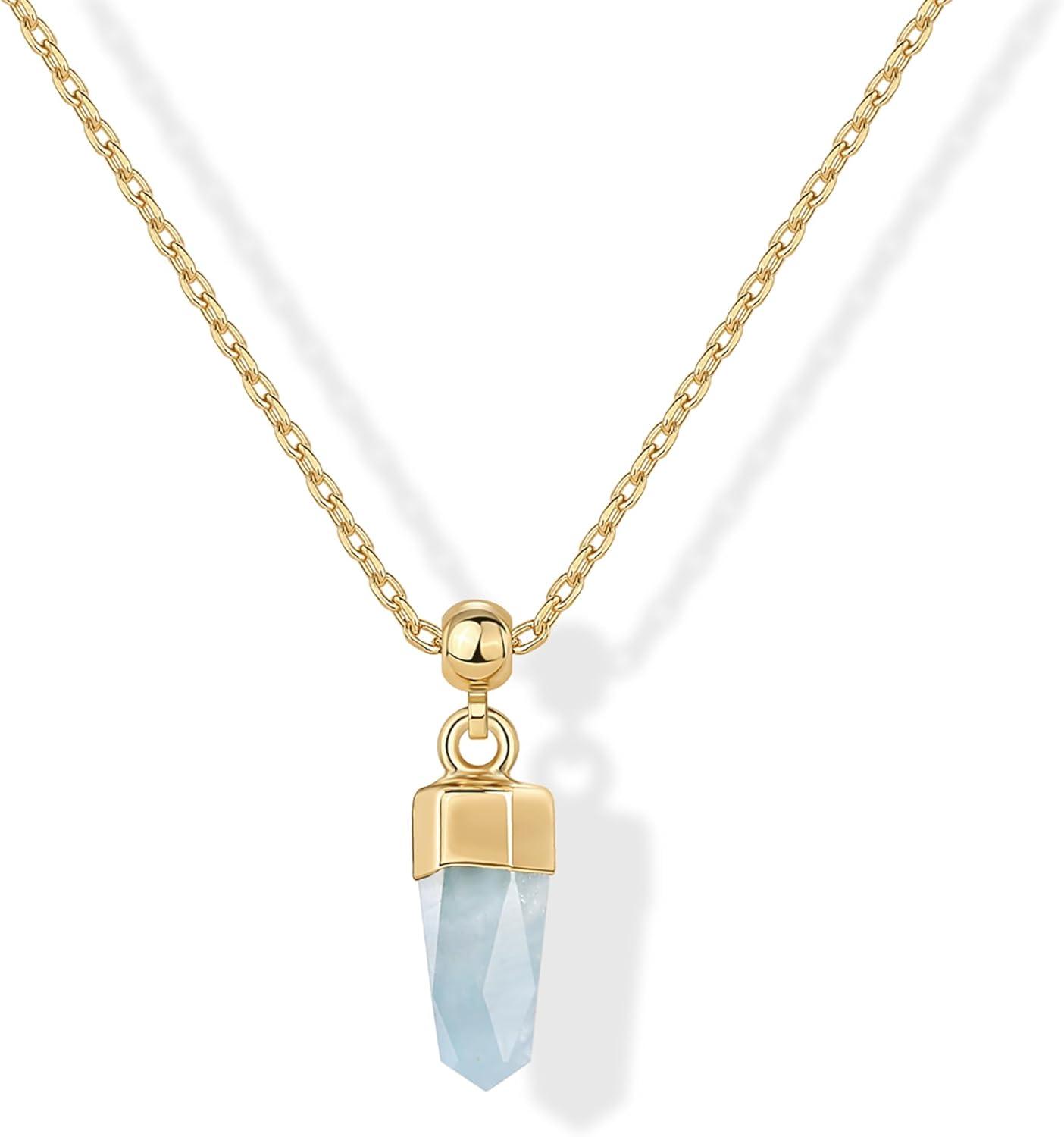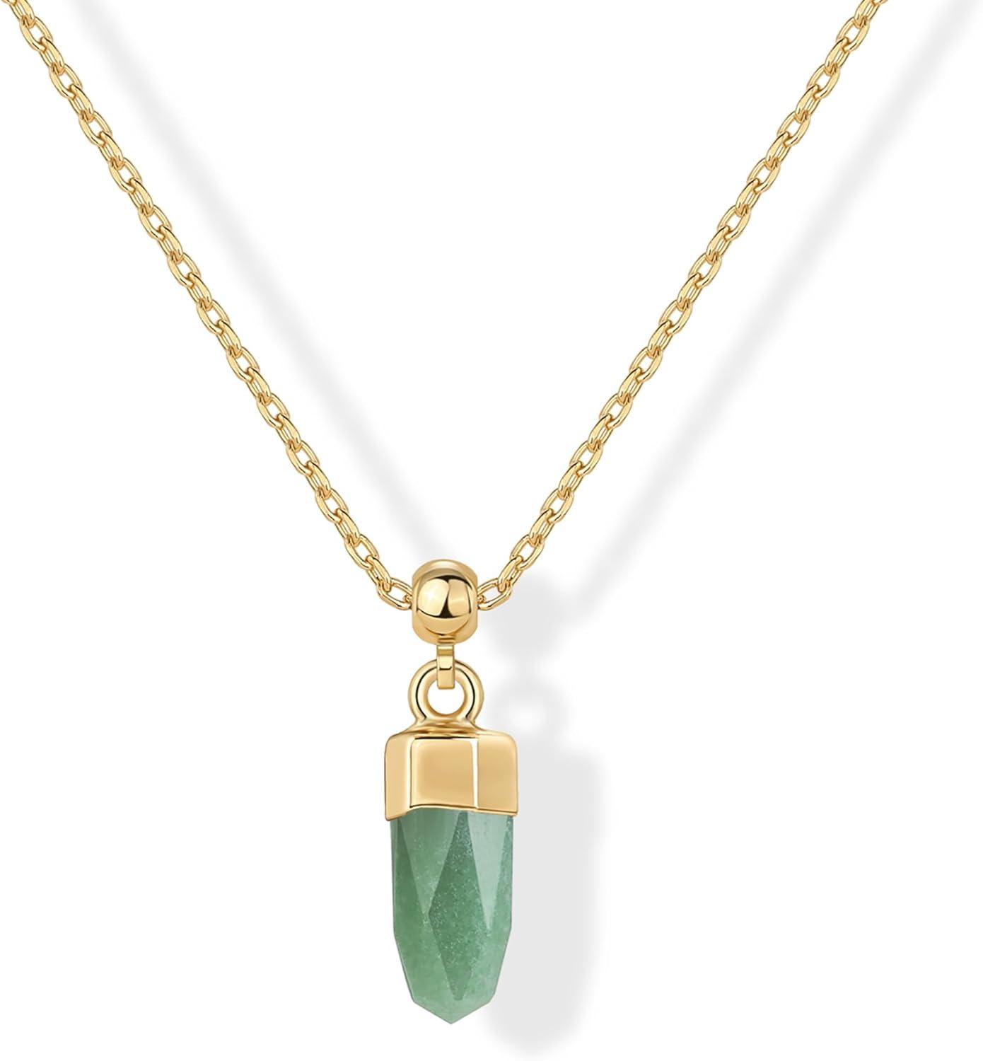 PAVOI Gemstone Gold Charm Necklace for Women – 14K Gold Plated Adjustable Chain Dainty Pendant Gemstone Necklaces with Cute Charms Set – Hypoallergenic Trendy Healing Crystal Pendants(Yellow Gold)