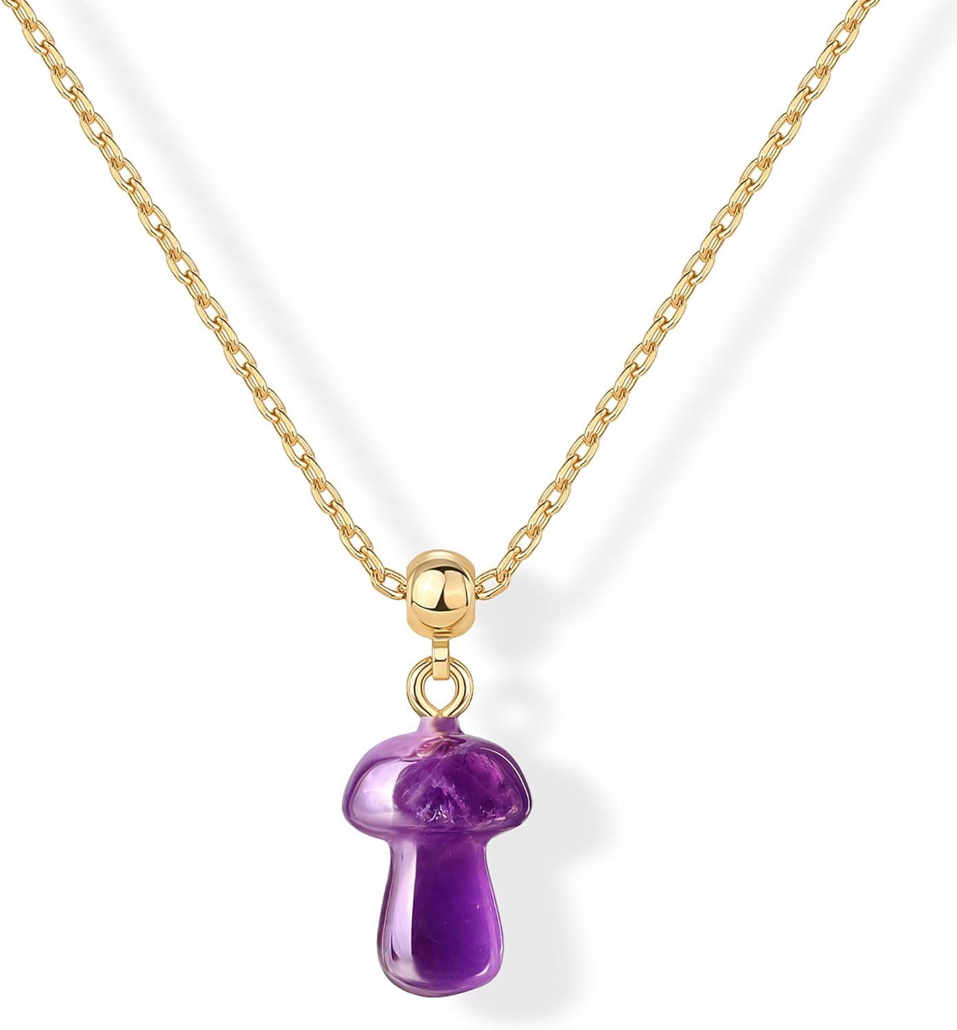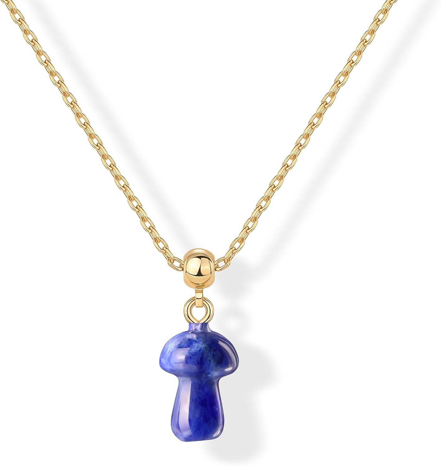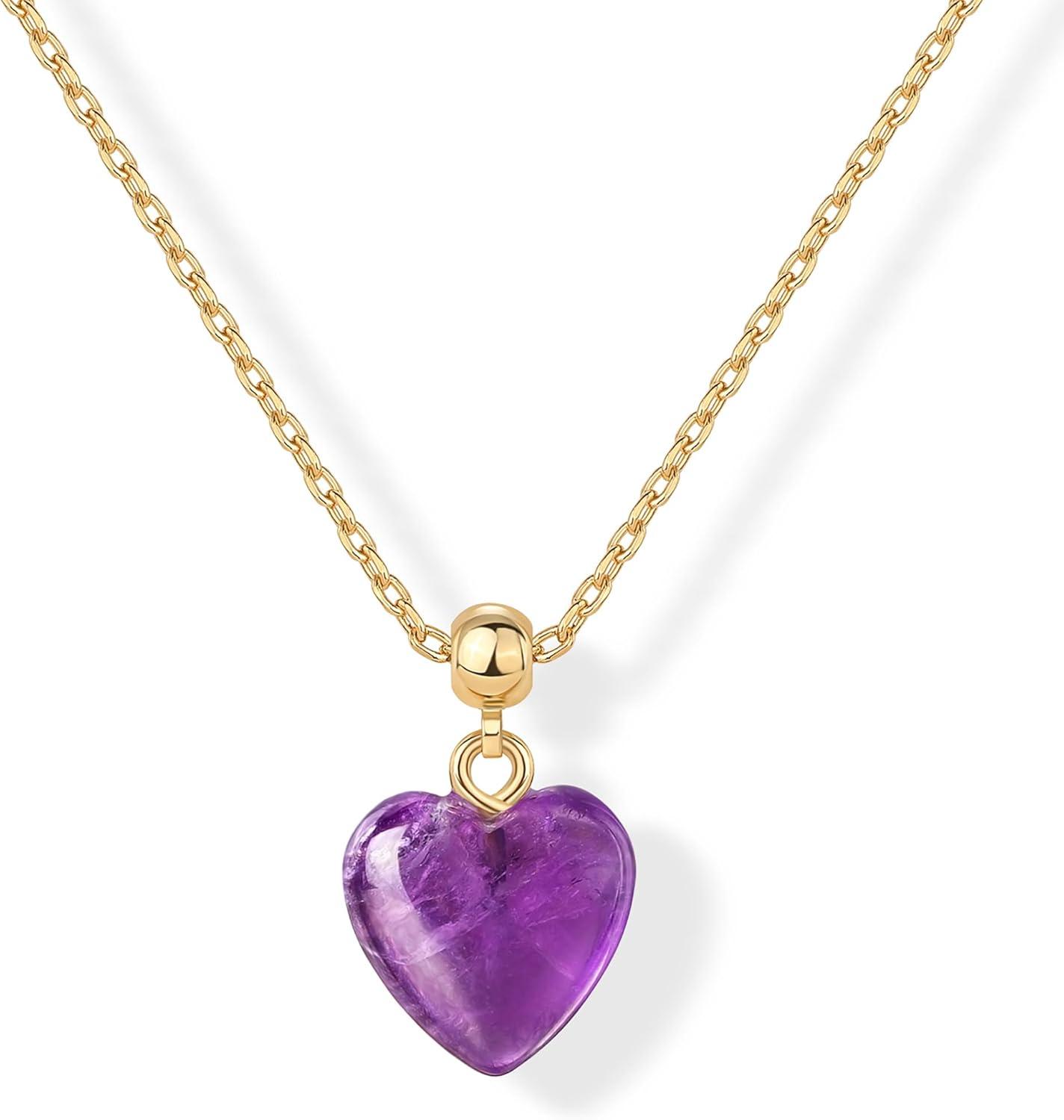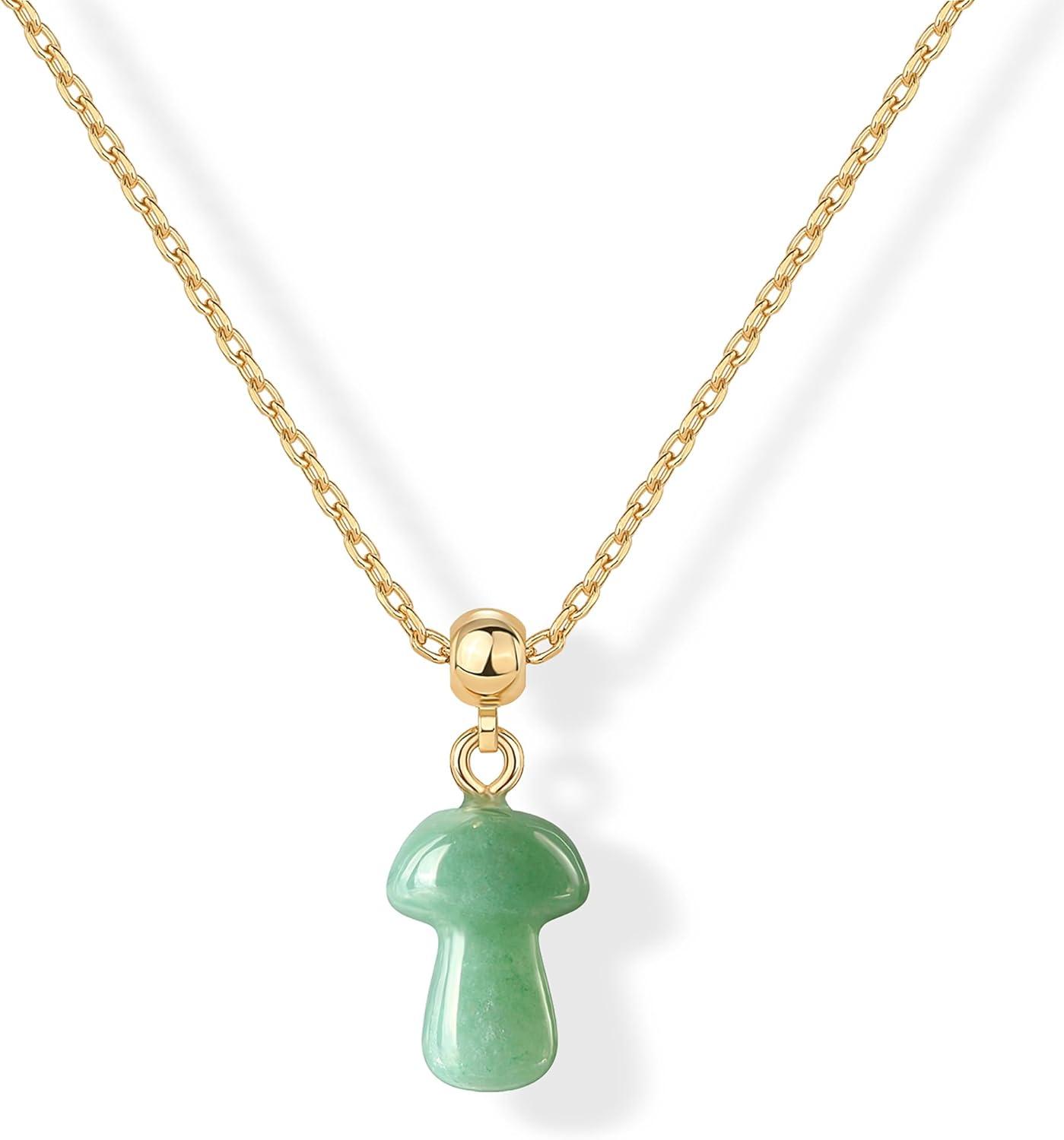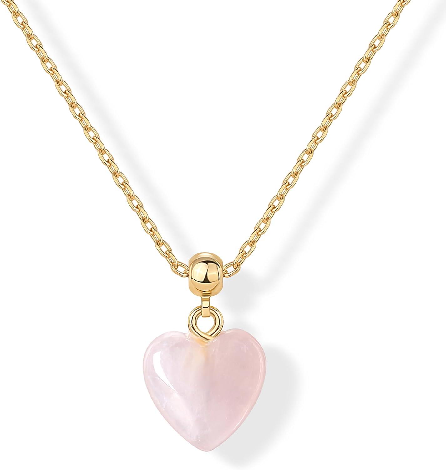 PAVOI Gemstone Gold Charm Necklace for Women – 14K Gold Plated Adjustable Chain Dainty Pendant Gemstone Necklaces with Cute Charms Set – Hypoallergenic Trendy Healing Crystal Pendants(Yellow Gold)
