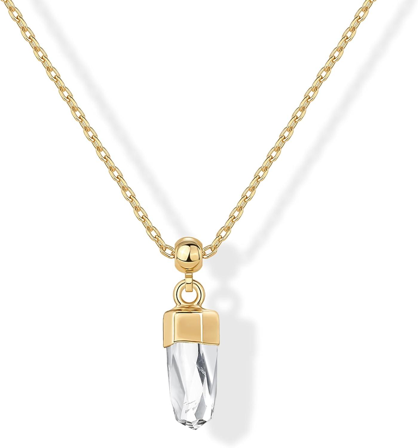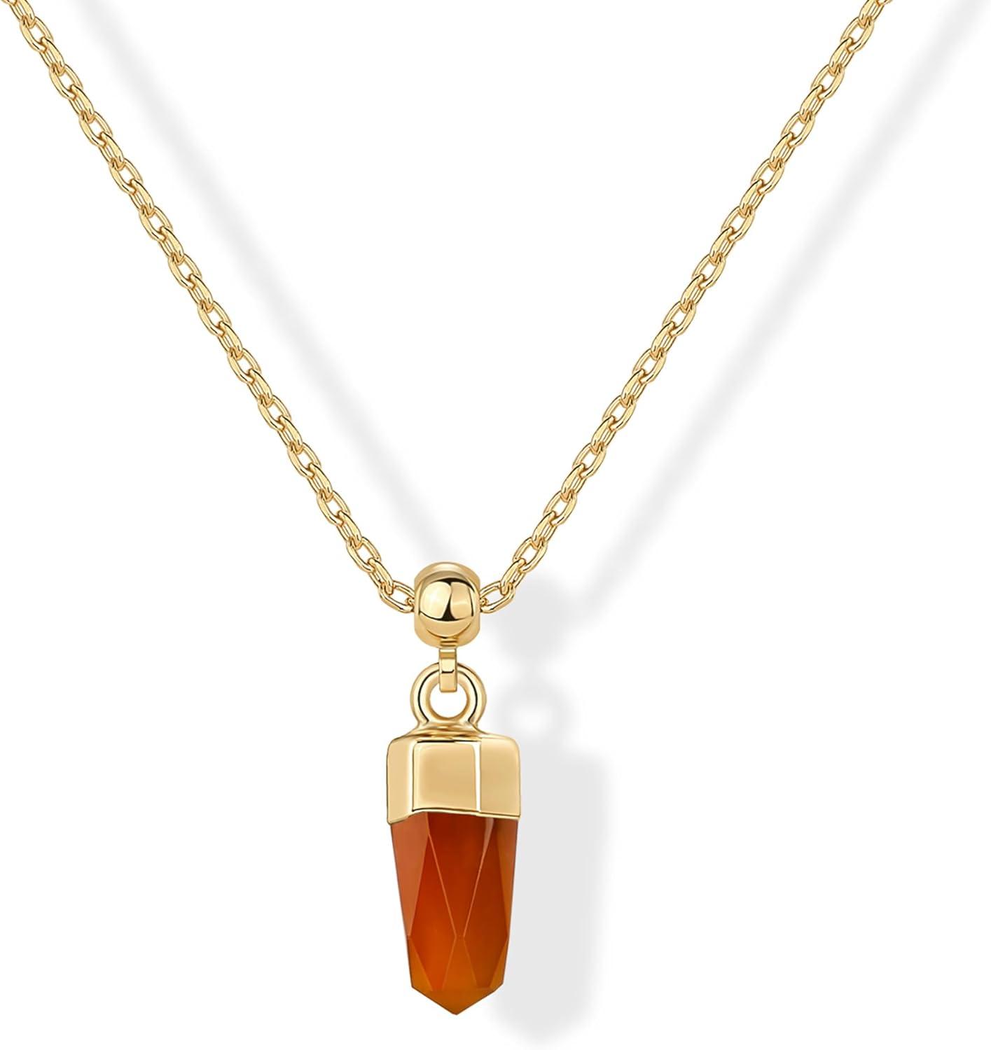 Elevate your everyday look with the PAVOI 14K Gold Plated Gemstone Pendant Necklace for Women—a stunning blend of elegance and simplicity. Featuring a faceted gemstone pendant measuring 11MM x 7.5MM, this cute necklace for women adds a delicate sparkle to any outfit. Its adjustable 18″ sliding ball chain offers a customizable fit, making it perfect for layering or wearing solo as a standout piece. Crafted with a high-quality 14K yellow gold-plated finish, this gold dainty necklace is lightweight, durable, and comfortable for all-day wear. Whether you’re looking for simple necklaces for women or a stylish addition to your collection, this simple gold necklace offers timeless appeal with a modern twist. The minimalist design pairs effortlessly with any outfit—from casual to formal—making it a go-to accessory for any occasion. Perfect as a gift or a personal treat, this necklace is ideal for birthdays, holidays, or just because. It stands out among gold pendant necklaces for women, offering just the right amount of shine and sophistication. Whether you're layering it with a y necklace or pairing it with other gold necklaces, its versatility makes it a jewelry-box essential. This piece also fits effortlessly into collections of necklaces, women jewelry necklace, or old necklaces for women, appealing to all ages and styles. Designed to match the beauty of everyday life, this women gold necklace brings charm and confidence to every moment. Discover why this trendy necklace is loved for its simplicity, style, and quality. Whether you call it a gold necklace, or your new favorite piece, it’s made to shine wherever you go.