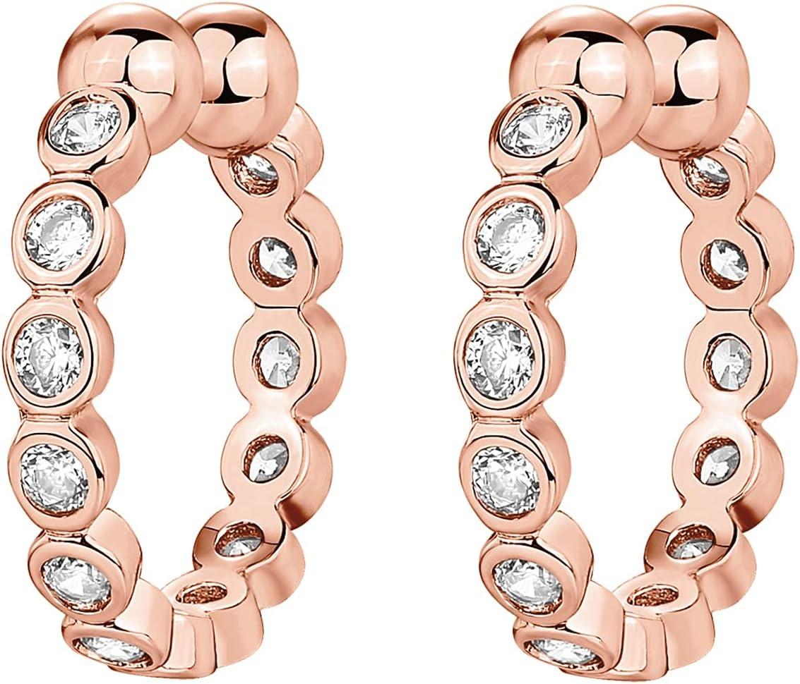 PAVOI 925 Sterling Silver 14K Gold Plated Cubic Zirconia Sparkling Round Huggie Ear Cuff Gold Earrings for Women | Clip On Cartilage(Rose Gold)