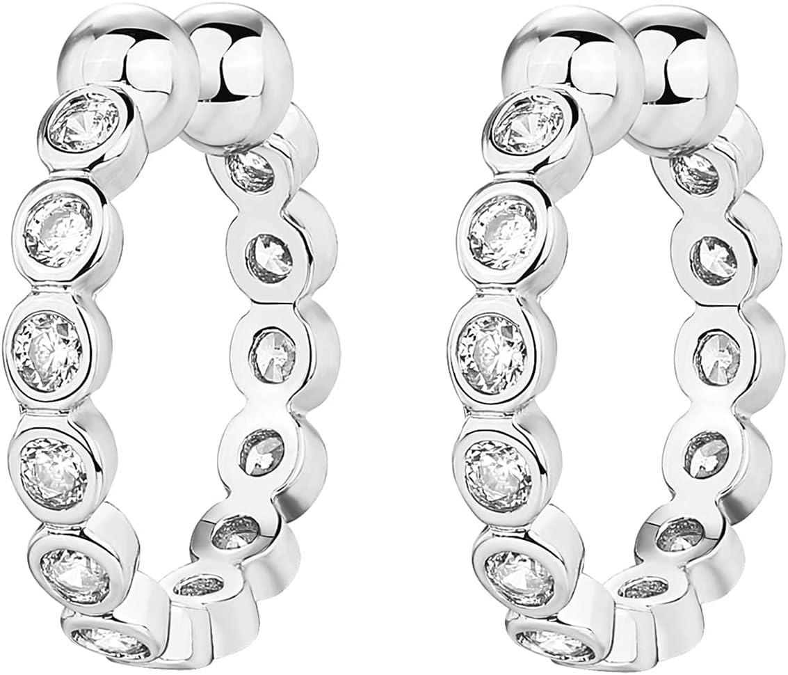 PAVOI 925 Sterling Silver 14K Gold Plated Cubic Zirconia Sparkling Round Huggie Ear Cuff Gold Earrings for Women | Clip On Cartilage(White Gold)