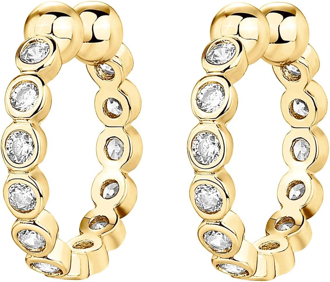 PAVOI 14K Gold Plated 925 Sterling Silver Post Pave Cubic Zirconia Huggie Hoop Earrings for Women(Yellow Gold)